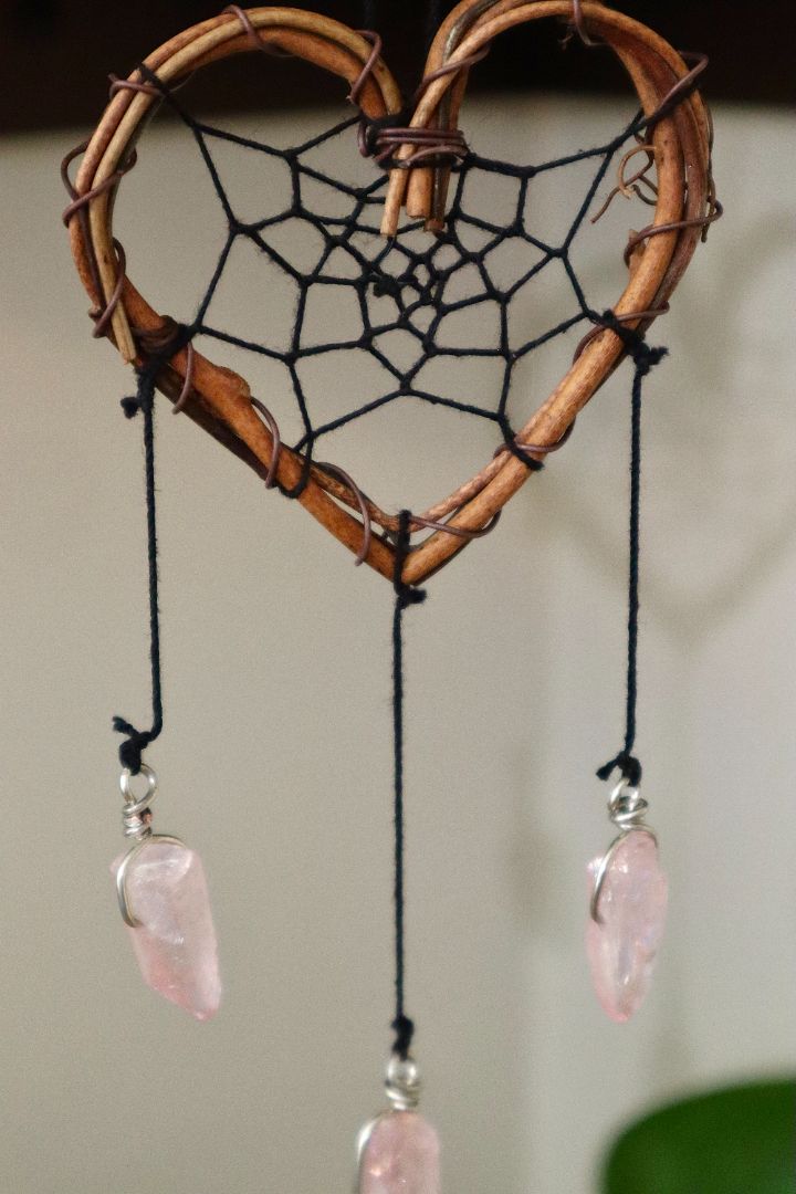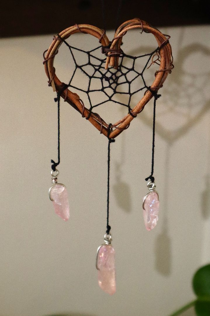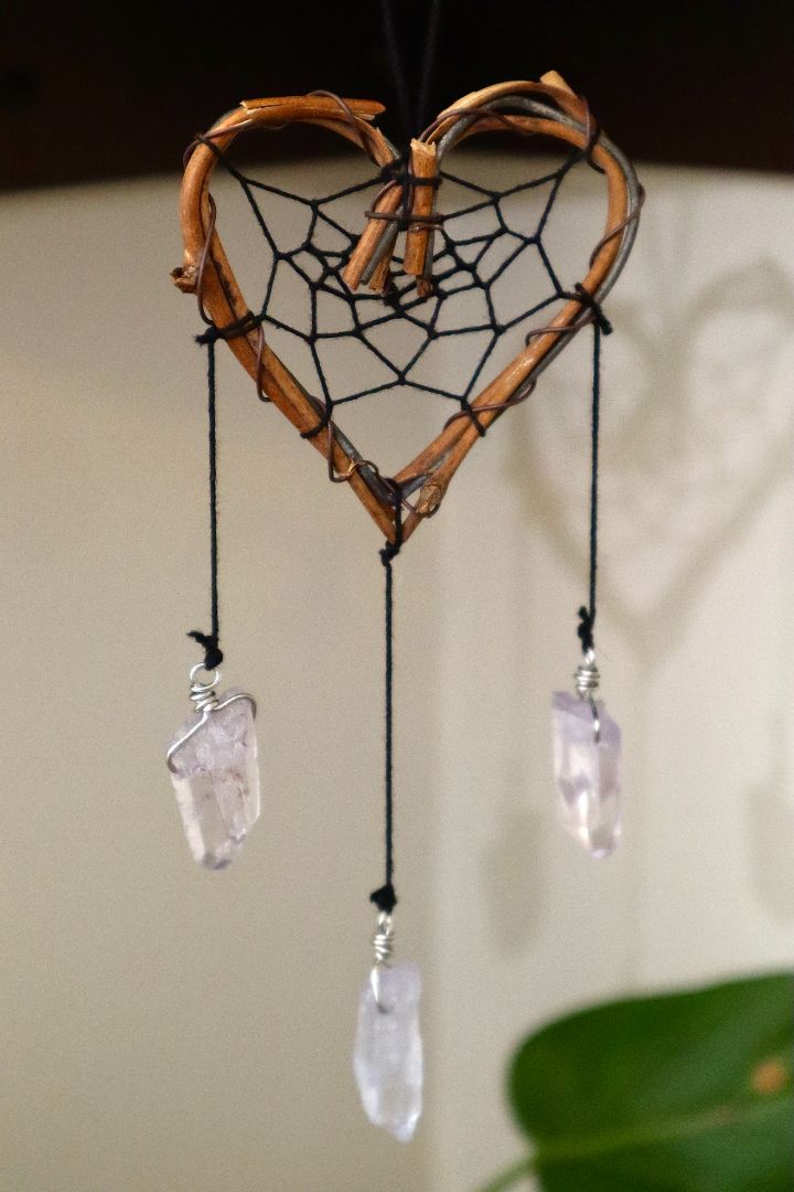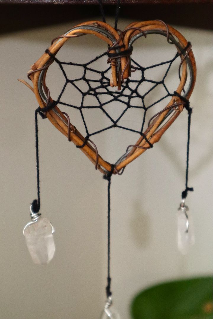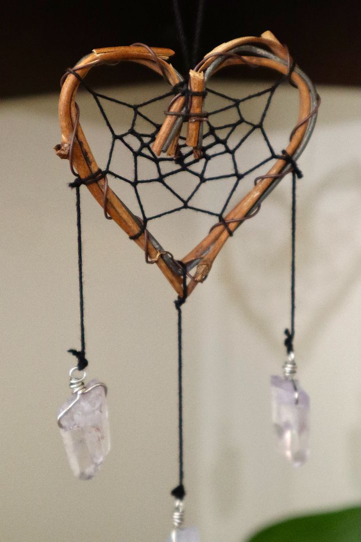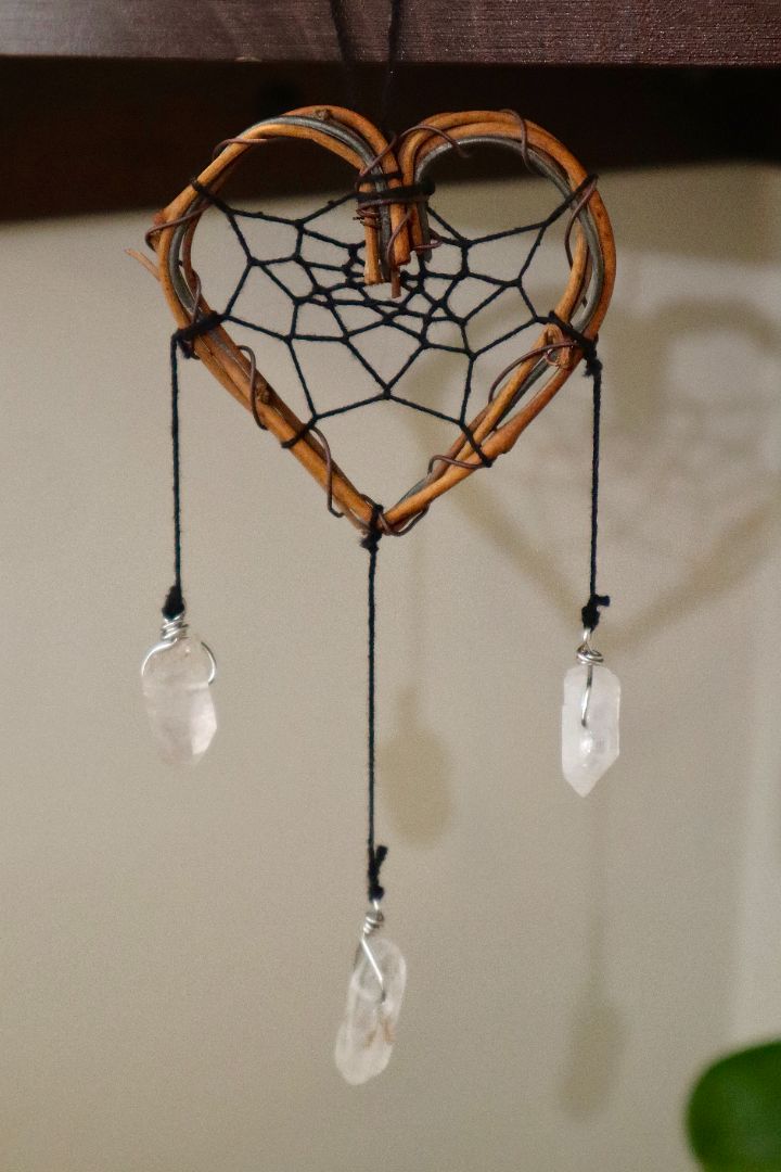 These mini heart dream catchers hang from your rearview mirror. They bring such a cute vibe to the inside of your car! All of the hangers have 3 crystals dangling from the bottom and can customized with a variety of crystals!